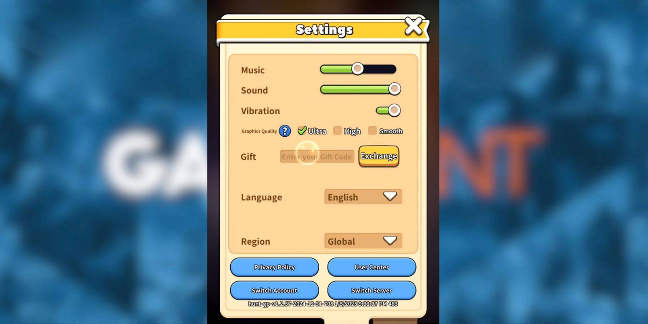 - 在設定內,找到禮物選項。您會看到一個輸入欄位和一個黃色的兌換按鈕。